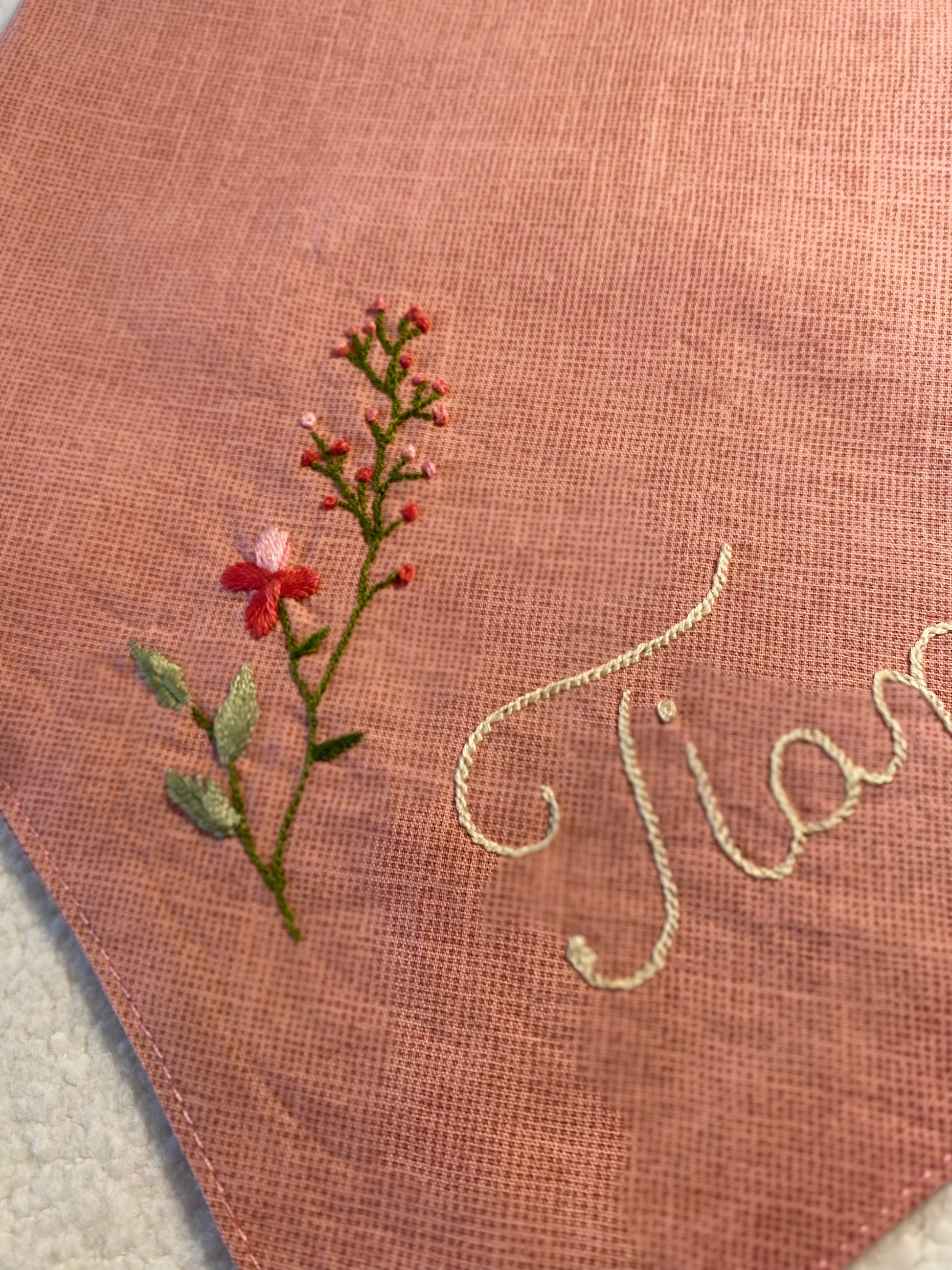 Bandana artesanal em tecido macio, com toque natural e acabamento cuidadoso. Disponível nos tamanhos P, M e G, se adapta ao porte do pet e garante conforto no uso. Cada peça é feita manualmente, com costura reforçada e caimento leve.
