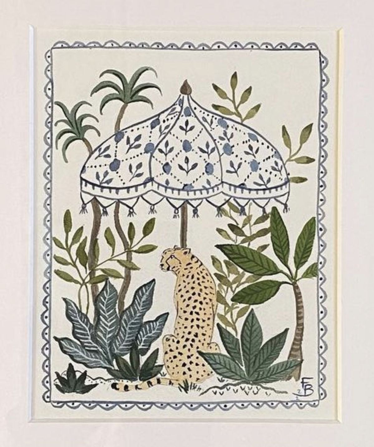 Ilustração original pintada em tecido com detalhes bordados à mão. Peça única para parede.